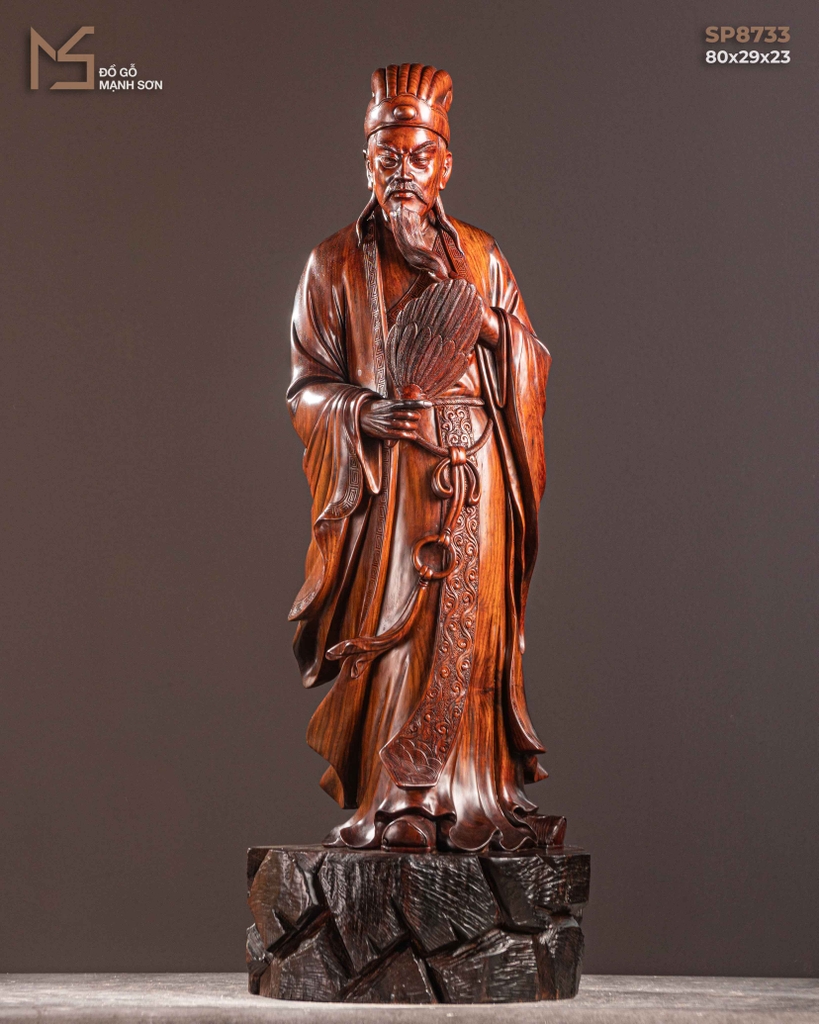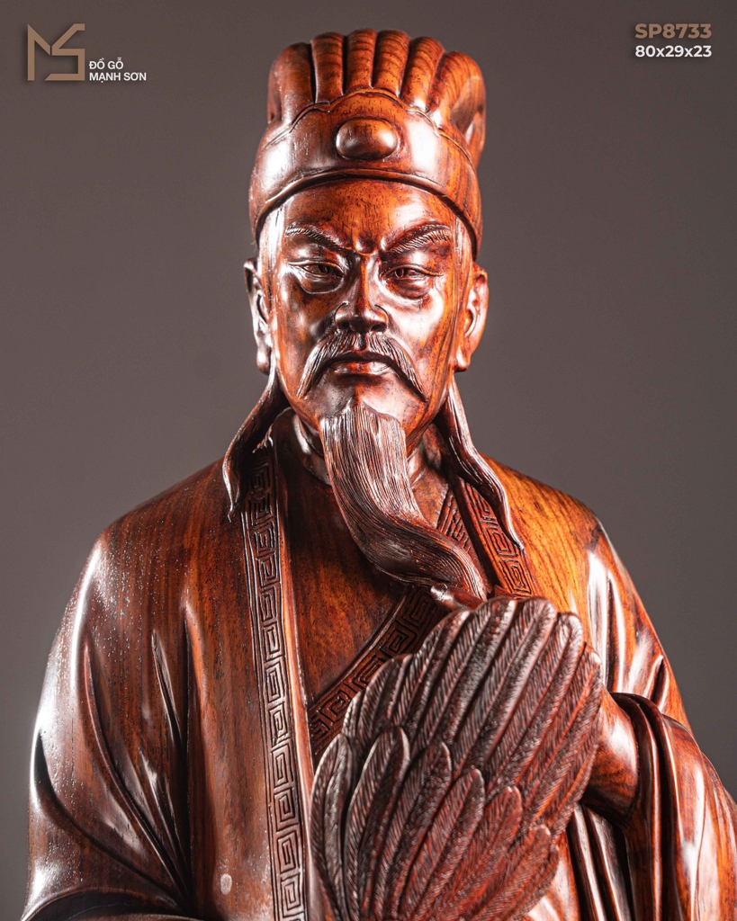 Trong tượng gỗ phong thủy thì hình tượng của ngài khổng minh được rất nhiều người quan tâm và trưng bày, không chỉ thế mà qua tiểu sử của ngài trong sử sách thì chúng ta cũng có thể biết qua về tài năng điều quân như thần khả năng phán đoán nhìn xa trông rộng và quyết đoán khi ra quyết định của nhân vật tài ba này.