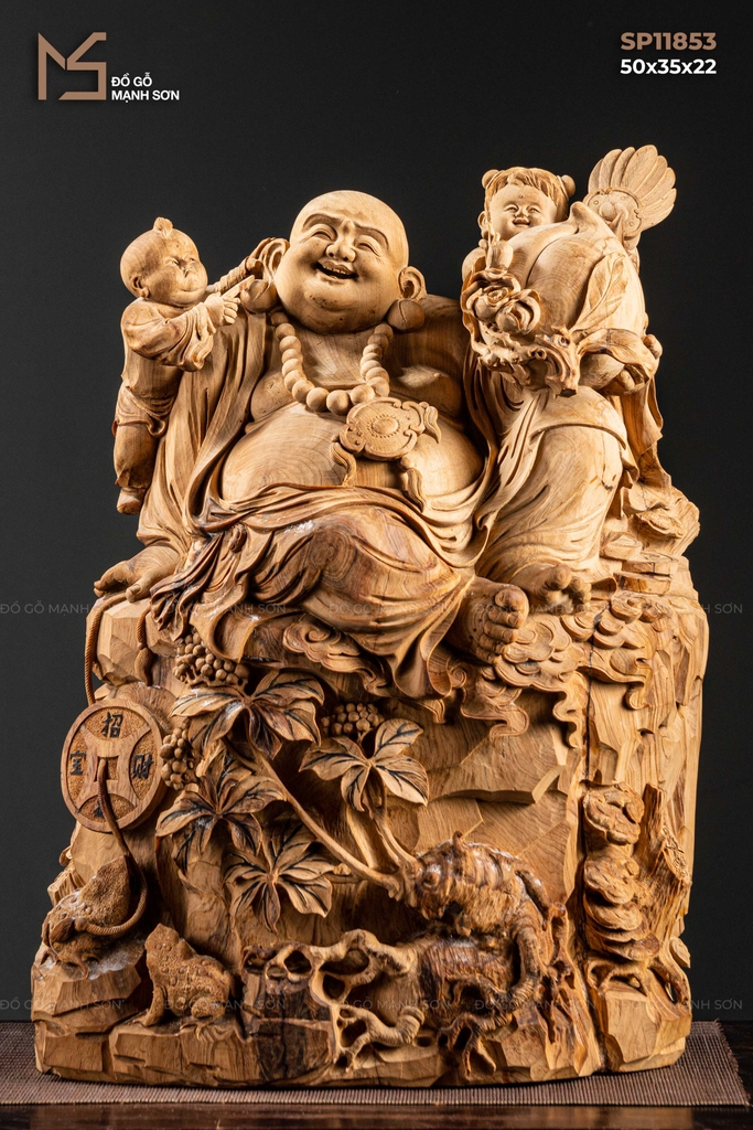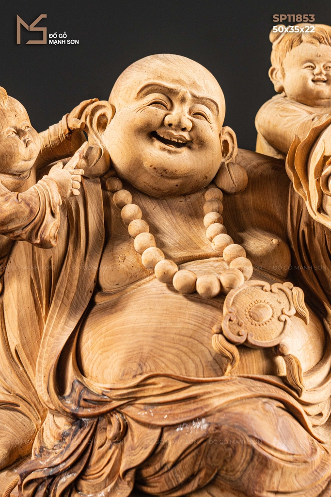 Ngoài việc chế tác từ gỗ, cụ di lặc thường được chế tác kèm theo các tiểu đồng vây xung quanh, được gọi là "đám người vây quanh" hoặc "đám thần tài". Đây được coi là biểu tượng của sự giàu có và thịnh vượng, đồng thời tượng trưng cho sự hội tụ tài lộc, tình duyên và sức khỏe. Cụ di lặc được tưởng tượng là một nhân vật vui tươi, hạnh phúc và mang lại may mắn cho những ai gặp gỡ và đặt niềm tin vào nó. Đám người vây quanh cụ di lặc được coi là những phù điêu đại diện cho mọi người trong xã hội, mang lại ý nghĩa về sự đoàn kết và hòa hợp.