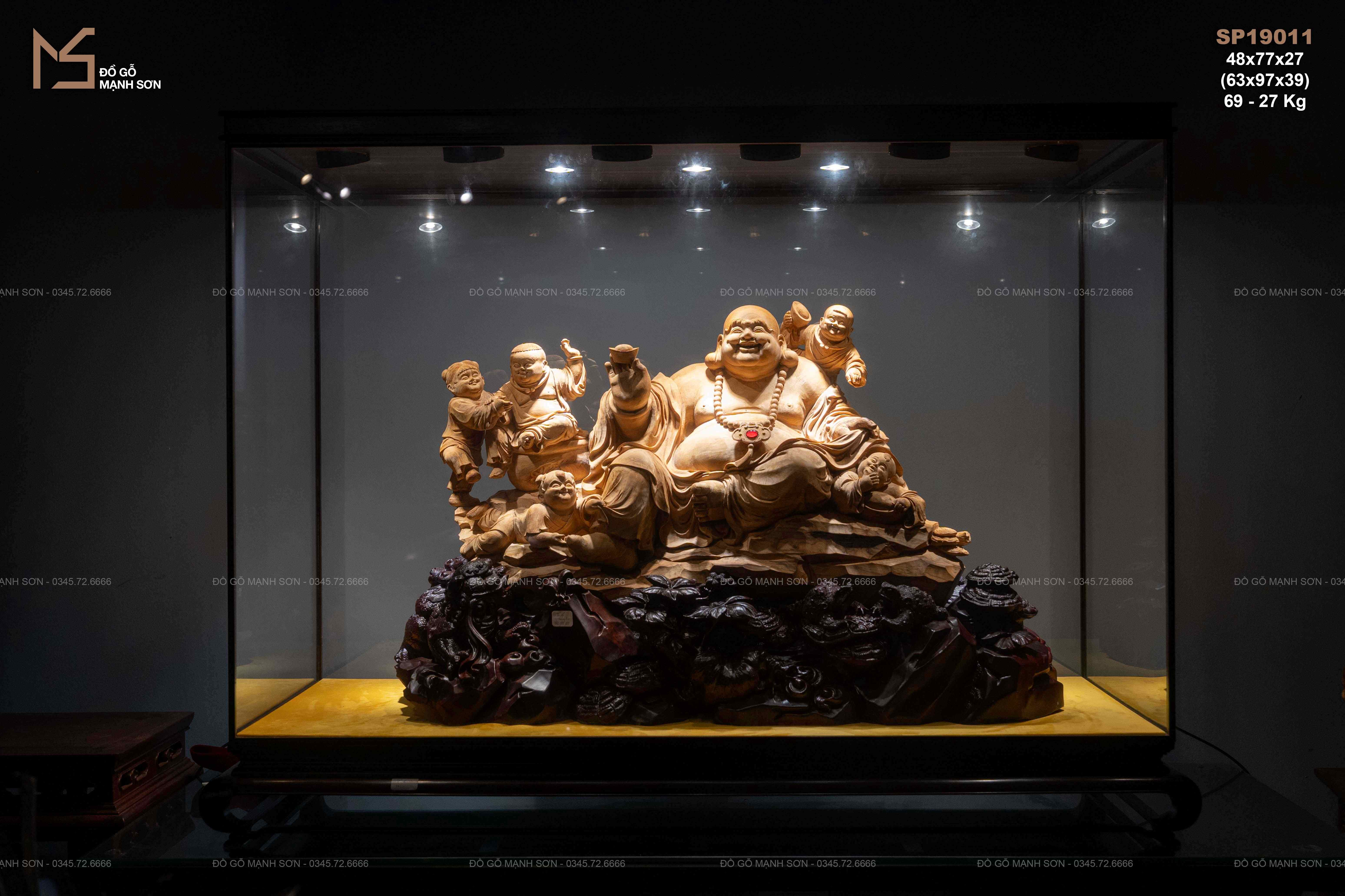 Hình tượng thần tài đã trở nên quá quen thuộc, đặc biệt với những ai làm kinh doanh. Tác phẩm tượng thần tài được chế tác trên dòng gỗ hoàng đàn sáng màu mang vẻ đẹp đầy bắt mắt, thu hút.