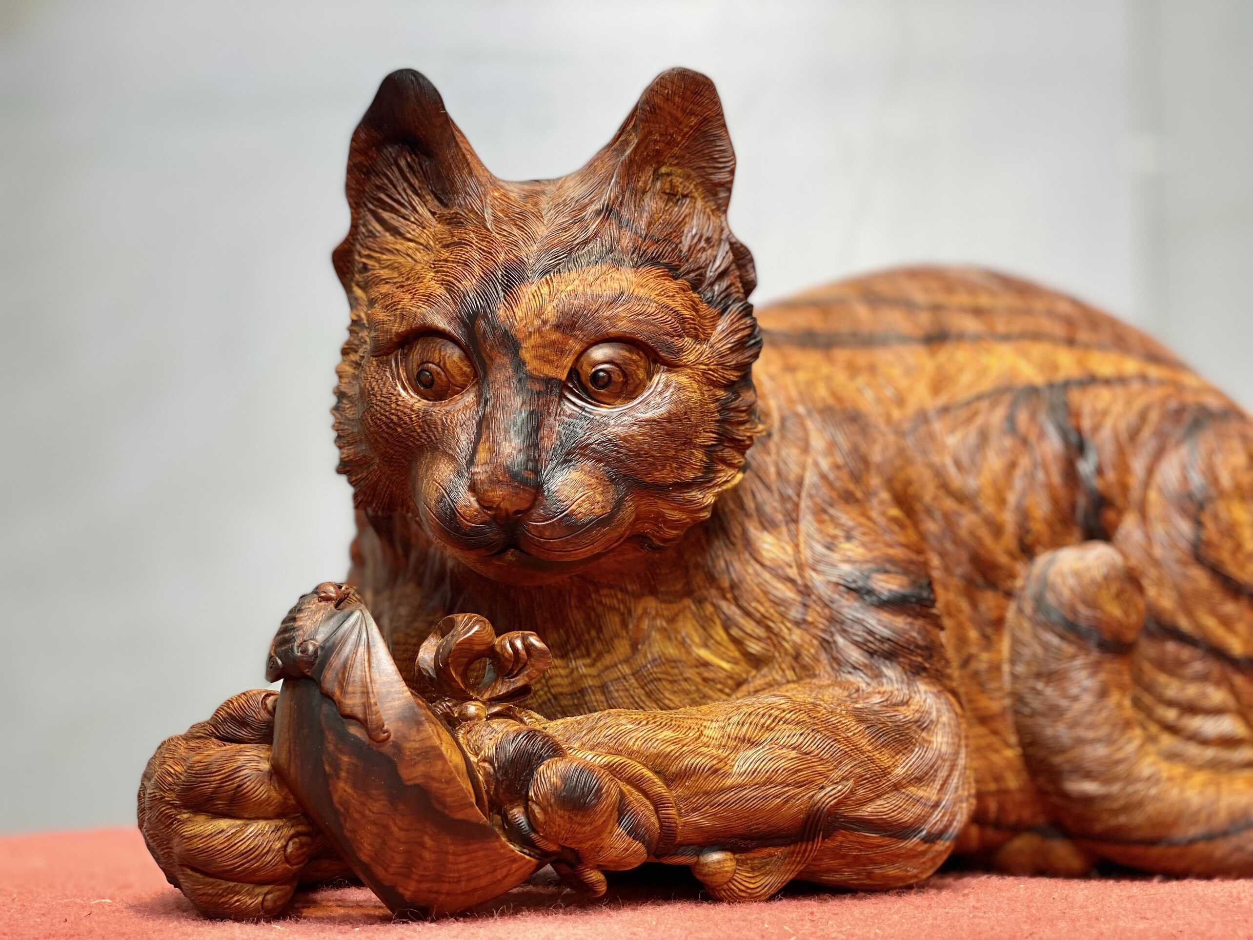 Đại diện cho sự linh hoạt, kiên trì, khéo léo và thông minh - loài mèo - một trong 12 con giáp trong âm lịch Việt Nam. Tượng gỗ linh vật mèo luôn được ưa chuộng đặt trong không gian làm việc của những gia chủ tuổi Mão.